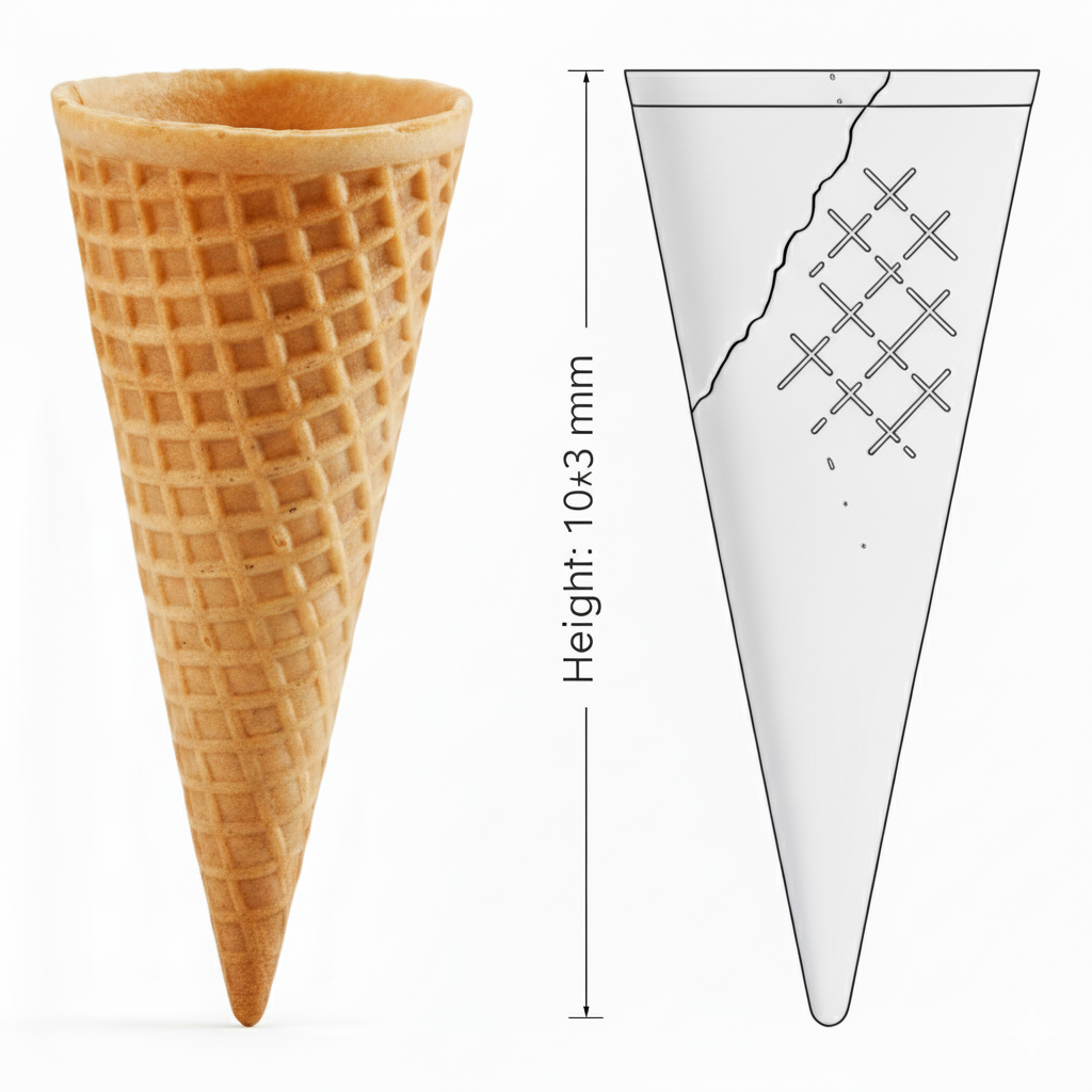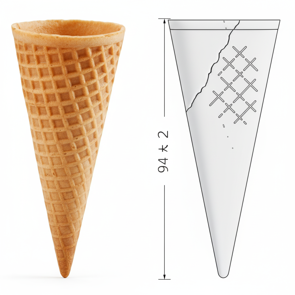 This big cone is largely used by branded ice cream manufacturers globally for serving ice cream in impulse packs in the portion size 100 ml to 120 ml. This cone is manufactured and supplied with or without sleeves/jackets as per customer requirement.