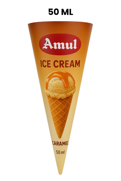 A compact Amul ice cream sleeve designed for 50 ML cones, made from safe food-grade paper and available with customized printing.